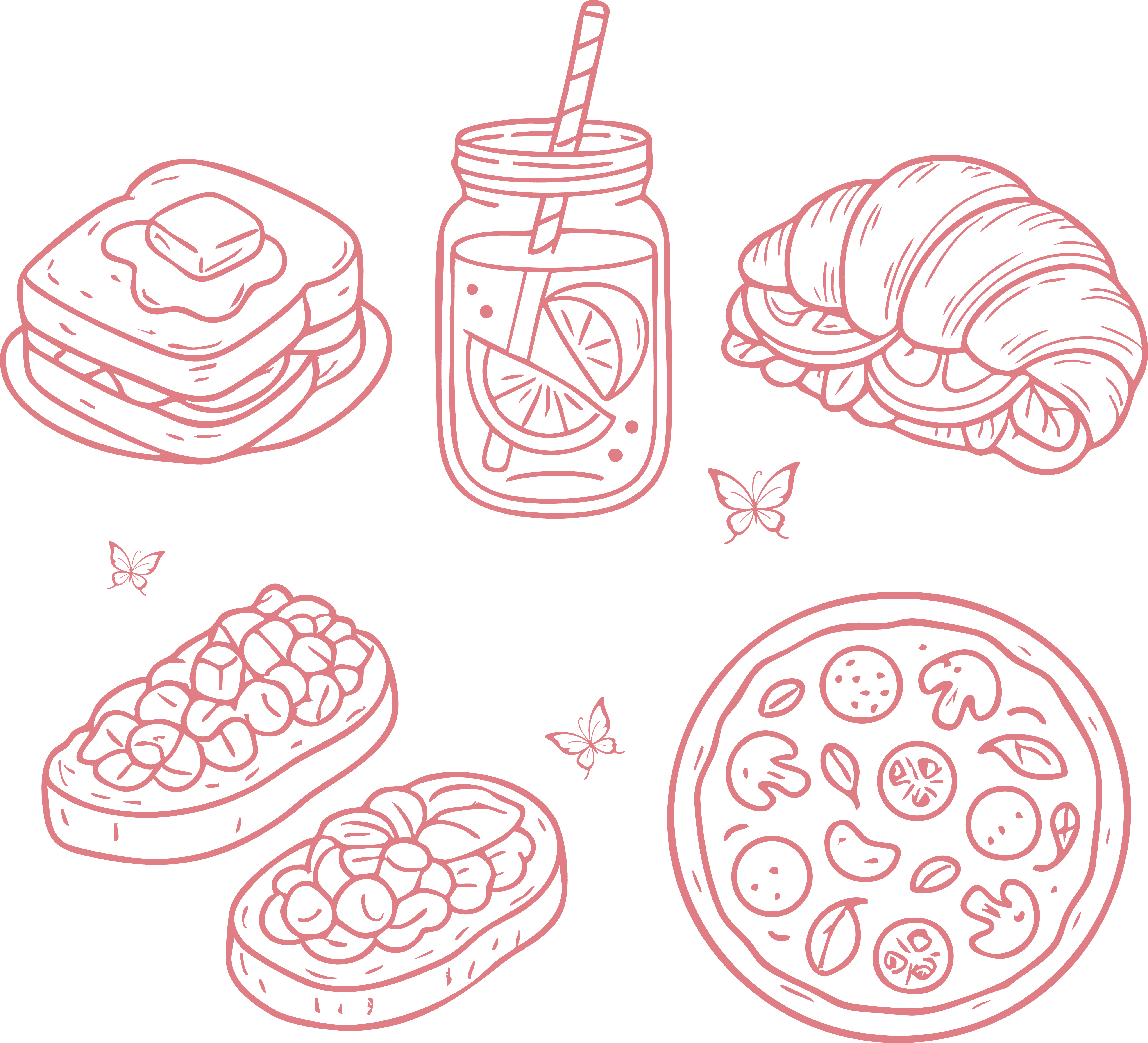 - 2 infusiones de cafe a eleccion - 2 exprimidos de naranja - 1 super tostado brioche - 2 Chipa relleno con J&Q - 1 roll de canela - 1 croissant relleno - 1 Degustacion de 4 mini porciones